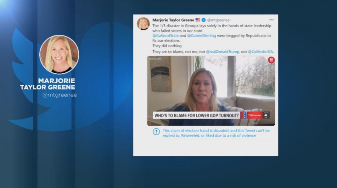 ტვიტერმა რესპუბლიკური პარტიის წევრის, კონგრესმენ მარჯორი ტეილორ გრინის ანგარიში დროებით დაბლოკა.