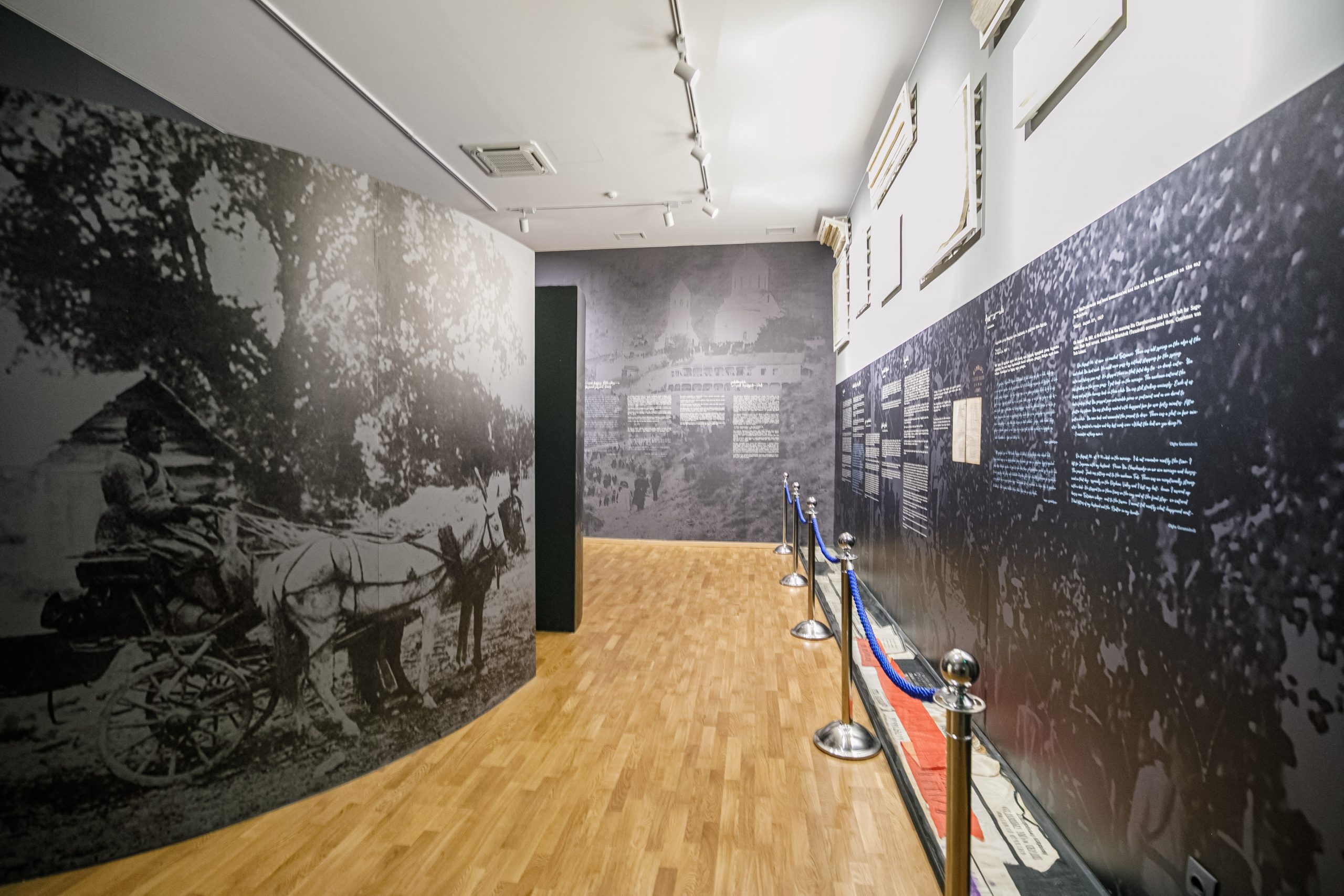 სამუზეუმო ტური ჩაბნელებულ ოთახში სრულდება. კედელზე ჩანს ამონარიდები 1907 წლის 31 აგვისტოს გაზეთებიდან: