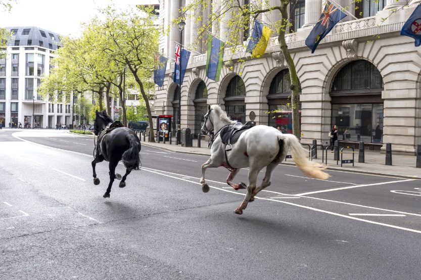 ლონდონში სამართალდამცველებმა დაიჭირეს ორი ცხენი, რომლებიც დედაქალაქის ქუჩებში ზედამხედველობის გარეშე დარბოდნენ. ცხენების უკონტროლო ქცევის შედეგად ოთხი მოქალაქეა დაშავებული.