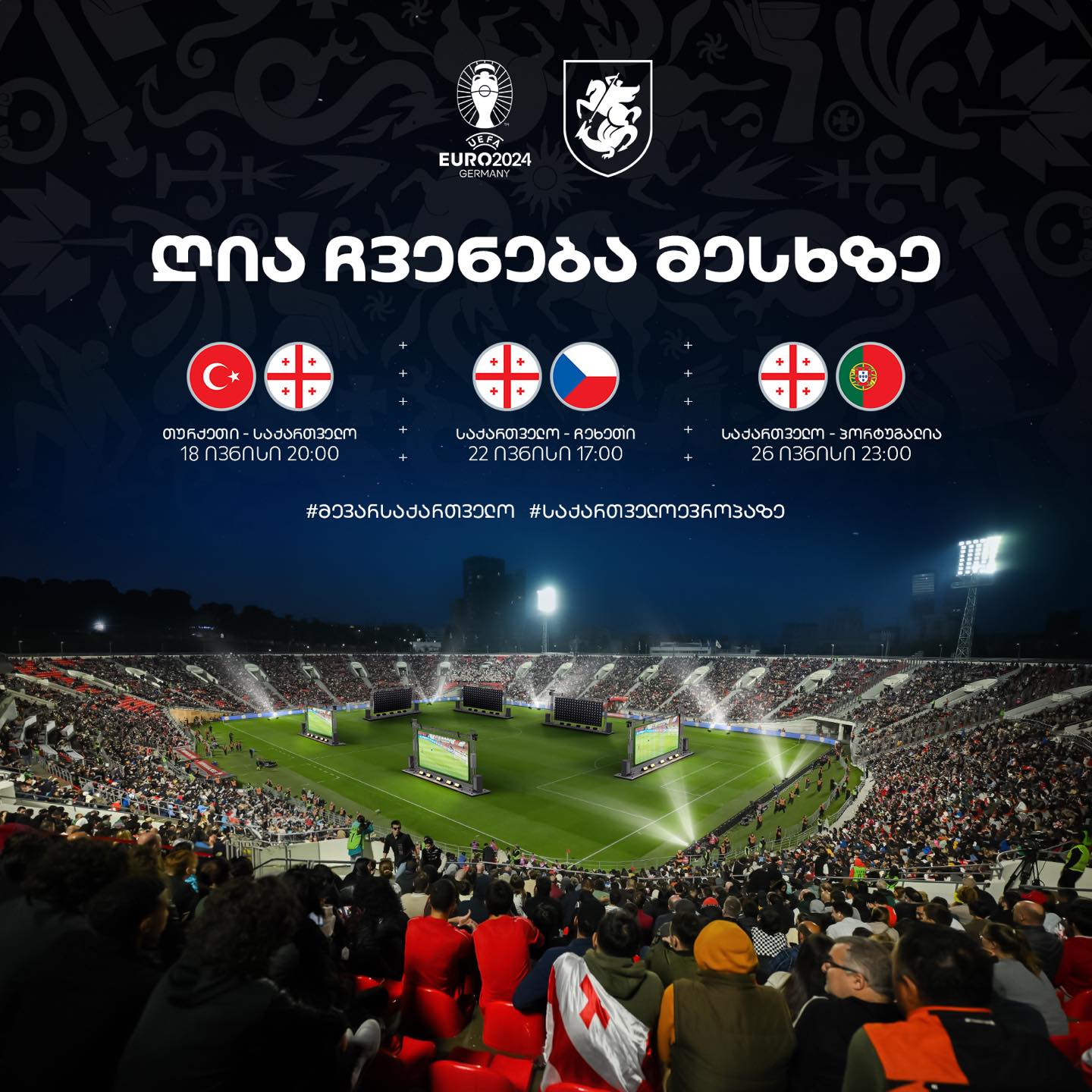 საქართველოს ფეხბურთის ფედერაცია გულშემატკივარს საშუალებას აძლევს 18, 22 და 26 ივნისს გერმანიაში გასამართ ევროპის ჩემპიონატზე საქართველოს ნაკრების მატჩებს მიხეილ მესხის სახელობის სტადიონის ტრიბუნიდან უყუროს.