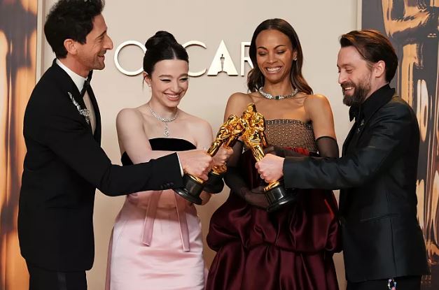 საუკეთესო მამაკაცი მსახიობის როლის შესრულებისთვის ოსკარი გადაეცა ედრიენ ბროუდის ფილმისთვის „ბრუტალისტი“. ბროუდი ასახიერებს უნგრელ არქიტექტორს, რომელიც მეორე მსოფლიო ომის შემდეგ ევროპას ტოვებს და ემიგრაციაში ამერიკის შეერთებულ შტატებში მიდის.