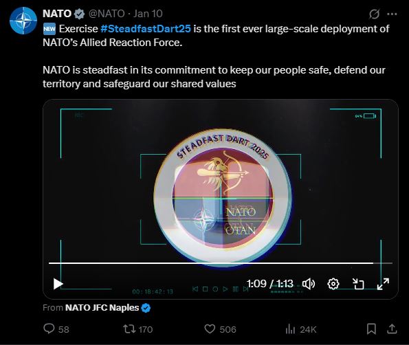 საერთაშორისო მედიის ინფორმაციით, აშშ-მა მოკავშირეებს შეატყობინა, თითქოს 2025 წლიდან აშშ ნატოს სწავლების დაგეგმარების პროცესში აღარ ჩაერთვებოდა. ერთ-ერთი შვედური მედიაგამოცემის ცნობით, ეს იმ ფაქტორით იყო გამოწვეული, რომ აშშ-ს სამხედრო აქტივობები ძირითადად მიმართულია აზია-წყნარი ოკეანის რეგიონზე. ამ მოსაზრებას, გარკვეულწილად, ამყარებდა ალიანსის უახლესი სამხედრო სწავლება STEADFAST DART 2025…