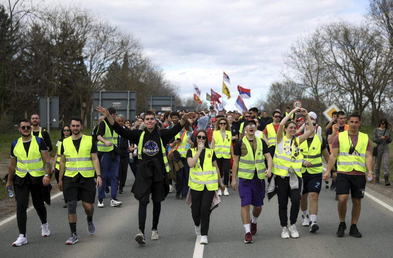 სერბი სტუდენტები ქვეყნის სხვადასხვა რეგიონიდან დედაქალაქ ბელგრადში მსვლელობით მიემართებიან.