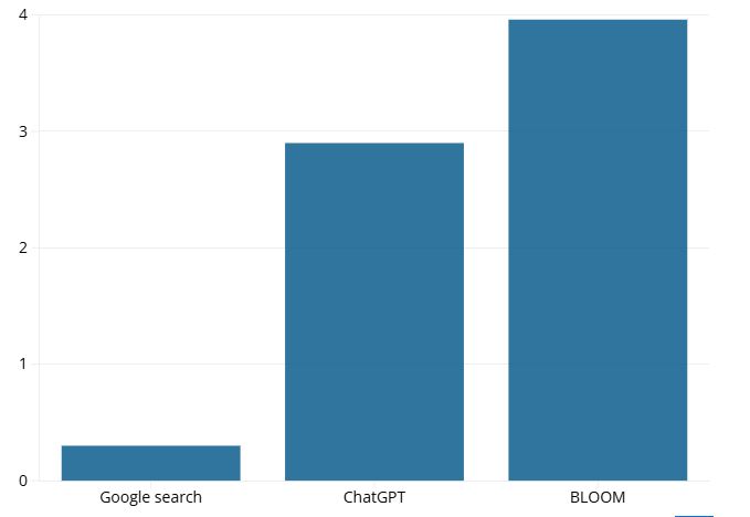 არაკომერციული კვლევითი კომპანიის “Electric Power Research Institute”-ის ინფორმაციით, ChatGPT-ის გამოყენებით ძიებისას საათში 2.9 ვატი იხარჯება, ტრადიციული საძიებო სისტემა Google კი ამავე ოპერაციისთვის საათში 0.3 ვატს საჭიროებს.