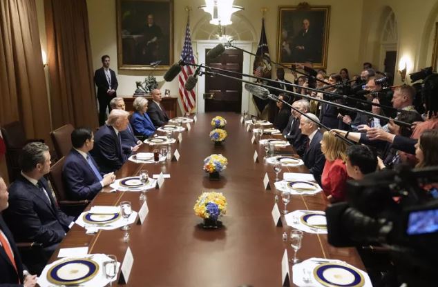 ტრამპმა ეს კომენტარი გააკეთა ოვალურ კაბინეტში, სადაც ნორვეგიის პრემიერ-მინისტრ იუნას გარ სტორეს სავაჭრო საკითხებისა და უკრაინაში რუსეთის ომის განსახილველად მასპინძლობს.