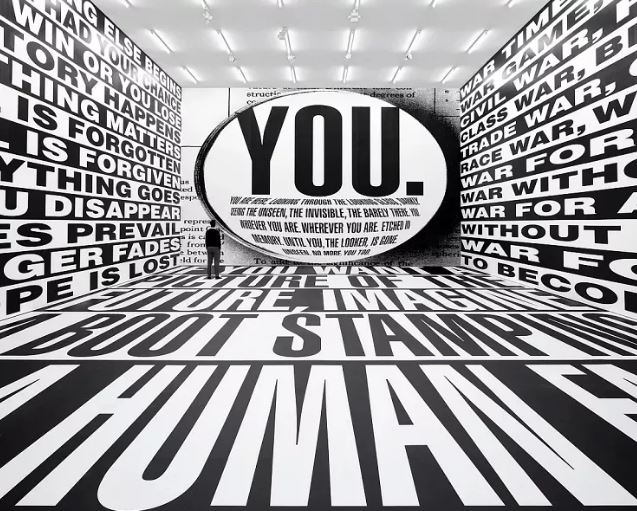 ესპანეთის ქალაქი ბილბაო წარმოგიდგენთ კიდევ ერთ გამოფენას, რომელიც ენის ძალას ეძღვნება. კონცეპტუალური მხატვრის, ბარბარა კრუგერის, მიერ შექმნილი თამამი ვიზუალური გრაფიკა ორმოცდაათ წელზე მეტია საზოგადოების ყურადღებას იპყრობს. აქ მონოქრომატული სიტყვებით სავსე სივრცეები ბეჭდური ჟურნალის გვერდებს ჰგავს, რომლებიც გვიბიძგებს, ხელახლა დავფიქრდეთ კონსუმერიზმის, პოლიტიკის, იდენტობისა და სექსუალობის შესახებ. გამოფენა გუგენჰაიმის მუზეუმში 19 ივნისიდან 9 ნოემბრის ჩათვლით გაიმართება.