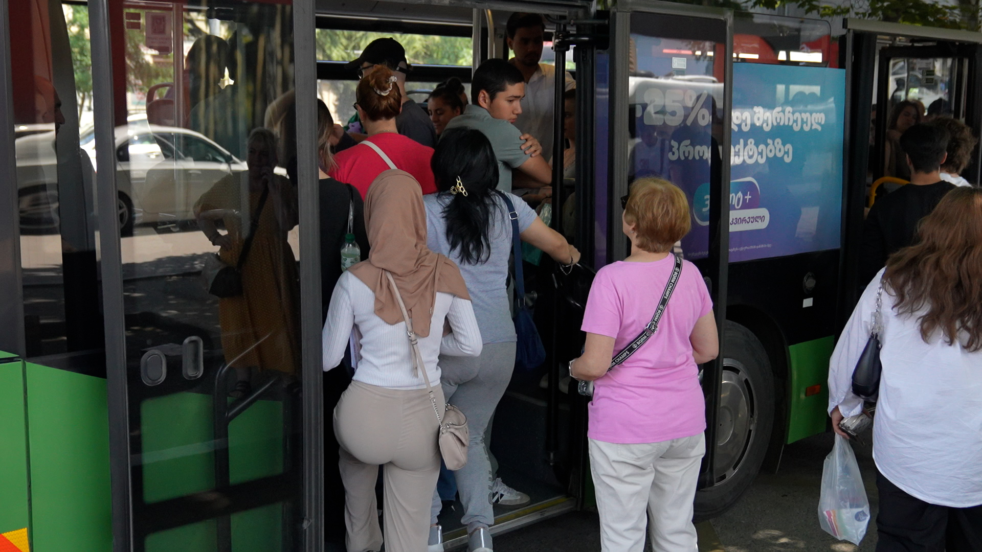ხალხით სავსე მიკროავტობუსში ზაფხულის სიცხეში ფეხზე დგომით მგზავრობა განსაკუთრებით ჭირს, თუმცა სხვა გამოსავალიც არ არის.