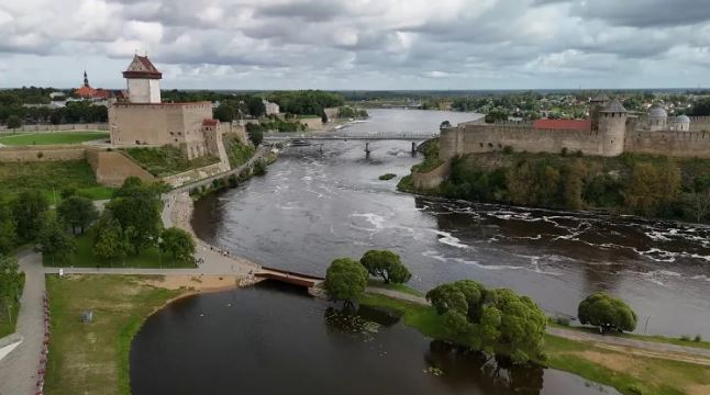 მდინარე ნარვა ესტონურ ქალაქ ნარვასა და რუსეთის ქალაქ ივანგოროდს შორის მიედინება