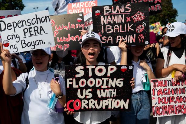 ფილიპინების ფინანსთა სამინისტროს თანახმად, ბოლო ორ წელიწადში ქვეყნის ეკონომიკამ თითქმის 2 მილიარდი ამერიკული დოლარით იზარალა. მოქალაქეები ამას კორუფციულ სქემებს უკავშირებენ. კერძოდ, ამბობენ, რომ მასშტაბური წყალდიდობების დროს მოსახლეობის დახმარებისთვის განკუთვნილი თანხა მოხმარდა მაღალჩინოსნების პირად სარგებელს.